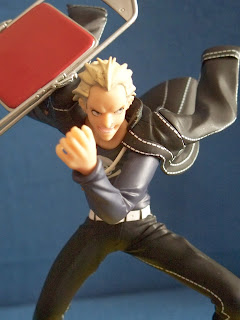 I'm happy to report that the chair can fit in a variety of ways, so it's been fun to play around with that. I gotta say... I know yellow is the color of Persona 4 through and through but I'm not feeling the base on these. They are a little too large and a little too plastic looking for my taste. Again, for a 15 dollar figure, he is still considered a good figure (not the best, but not the worst either) in my book.